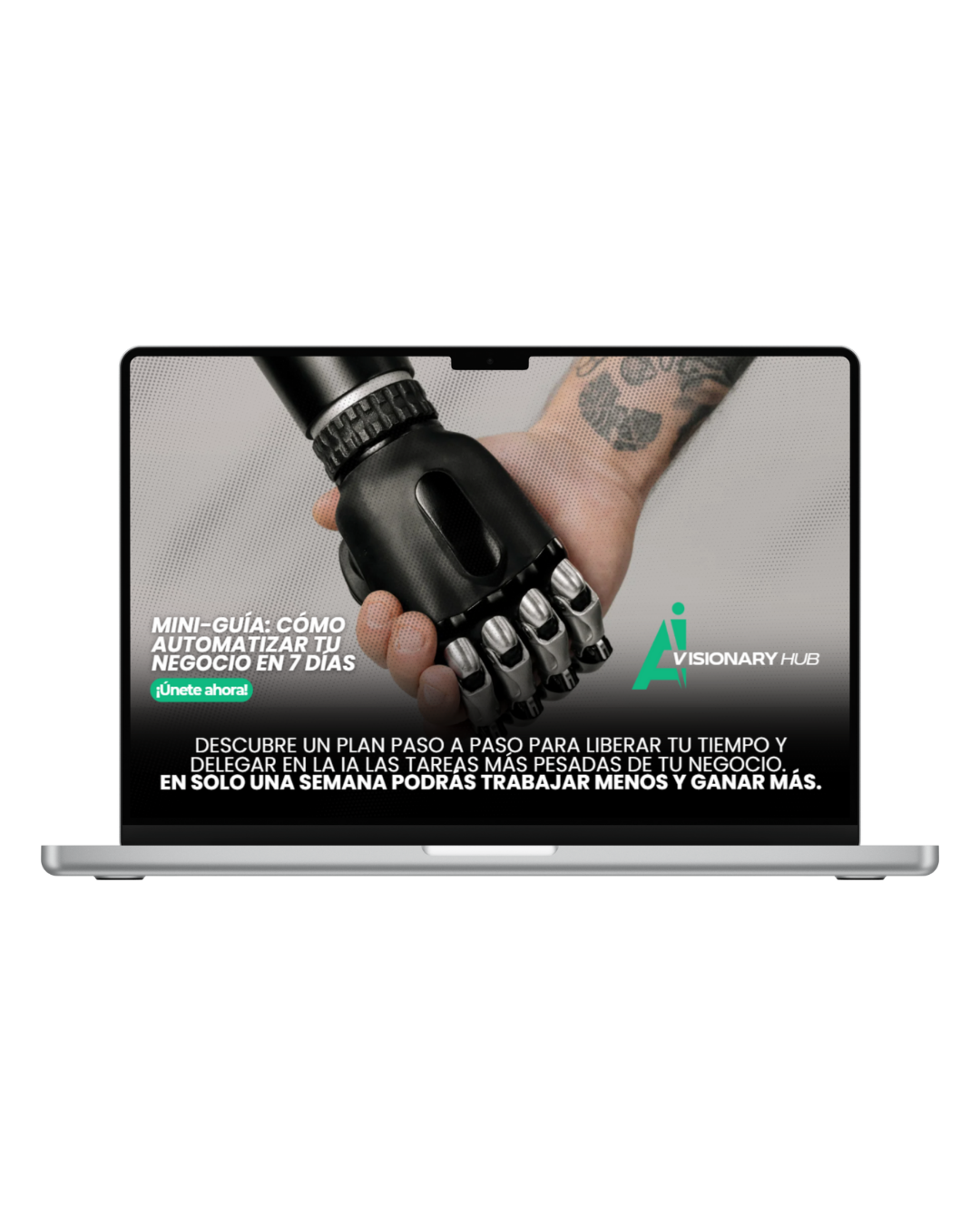 “Descubre un plan paso a paso para liberar tu tiempo y delegar en la IA las tareas más pesadas de tu negocio. En solo una semana podrás trabajar menos y ganar más.”
